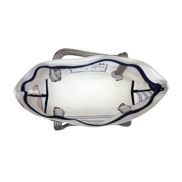 Nos Sacs à main sont confectionnés à la main, à partir d’une voile de croisière en Dacron, qui est une fibre polyester peu sensible aux ultraviolets et aux intempéries, choisie pour leur résistance, pour équiper principalement les dériveurs et les bateaux de croisière.